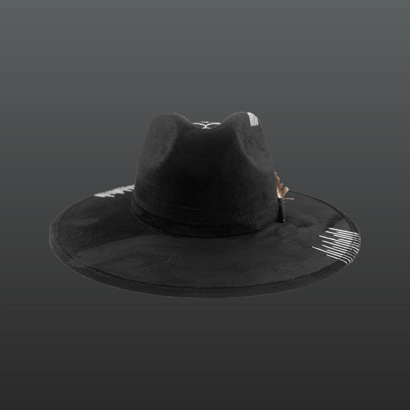 A classic black. If you are starting in the world of hats, this one’s for you, it goes with all your outfits. This design has white embroidery and its feathers that create an ideal balance.