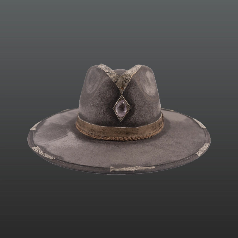 Handmade hat with engraved leather details, subtle burns and moonstone that provides benefits in sleep and mental clarity.